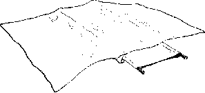 2. Сложите второе одеяло в три раза и положите его вдоль носилок так, чтобы конец в ногах выступал на 50- 60 см. По диагонали раскройте эти свисающие концы.