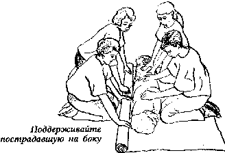 1. Скатайте одеяло в длину на половину его ширины и разместите его вдоль пострадавшей. Перекатите пострадавшую на бок, так, чтобы свернутая часть упиралась ей в спину.