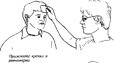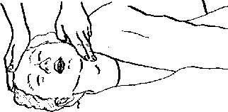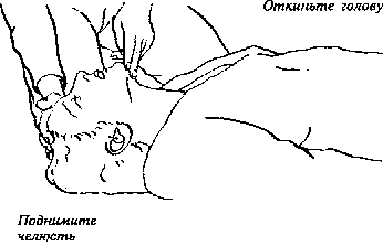 Поместите два пальца под подбородок и приподнимите челюсть пострадавшего. В то же время положите другую руку на лоб и откиньте его голову назад.