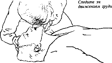 Почувствуйте дыхание на своей щеке. Подождите пять секунд для того, чтобы убедиться, что дыхания нет.