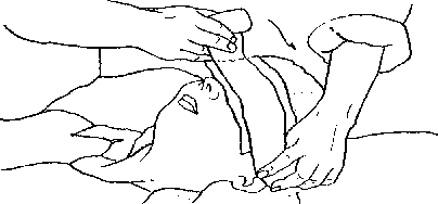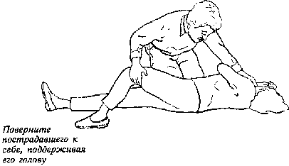 3. Держа руку прижатой к щеке пострадавшего, другой поверните его к себе за ногу.