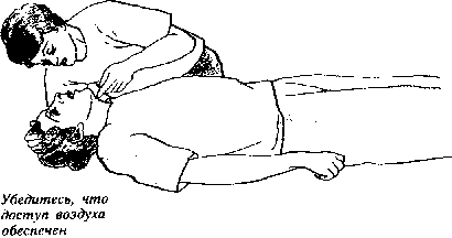 1. Проверьте, нет ли инородных тел или рвотных масс во рту пострадавшего и убедитесь, что он может дышать.