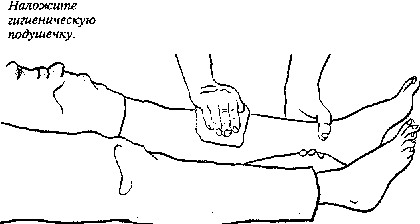 2. Если есть рана, проверьте, нет ли кровотечения, и наложите чистую повязку или гигиеническую подушечку. Наложите мягкие гигиенические подушечки над и вокруг раны и перевяжите ее в этом месте.