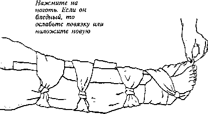3. Туго перевяжите, но так, чтобы не перекрыть доступ крови в конечность.