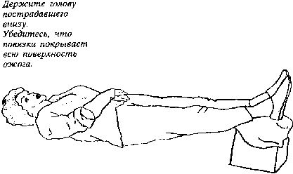 4. Если ожог большой, положите пострадавшего на землю, если возможно, поднимите и поддержите его ноги. Проверяйте пульс и дыхание каждые 10 минут, ожидая прибытия скорой помощи.