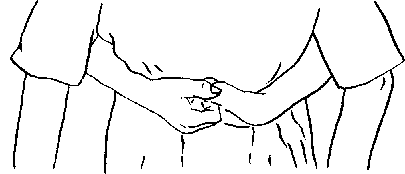 2. Если это не поможет, сделайте брюшной толчок: встаньте позади пострадавшего и обвейте руки вокруг его талии, одну руку поверните ладонью вверх, другую - ладонью вниз.