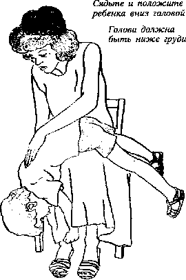 1. Положите ребенка на колени, головой вниз, и шлепайте его между лопаток, с меньшей силой, чем взрослого.