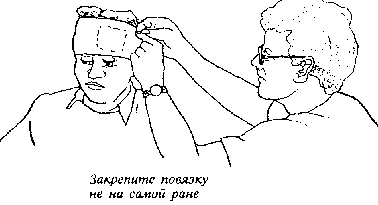 1. Если поражена кожа головы, устраните свисающие лоскуты кожи, возьмите гигиеническую подушечку и прижмите ее крепко и равномерно вокруг раны.
