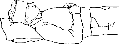 4. Откиньте голову назад, чтобы обеспечить доступ воздуха. Поддерживайте голову рукой. Расположите верхнюю ногу так, чтобы колено и бедро были взаимно перпендикулярны.