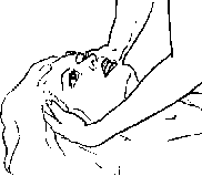 Расстегните одежду вокруг шеи. Посмотрите, нет ли стомы - отверстия в шее, которое оставлено после операции. Нет ли предупредительного медальона. Проверьте пульс в сонной артерии, учтите его частоту и силу. Опустите пальцы вниз по позвоночнику от основания черепа до промежутка между плечами, проверяя, нет ли там повреждений