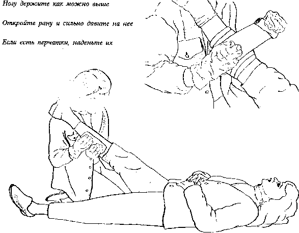 1. Уложите пострадавшего и как можно выше поднимите поврежденную ногу. Это приведет к остановке или уменьшению кровотечения.