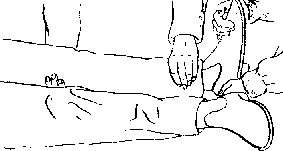Тяните кость по прямой линии, пока конечность надежно не закрепится. Вы не можете причинить вред при условии, если будете тянуть только по прямой, но не упорствуйте, если вытяжение причиняет нестерпимую боль.