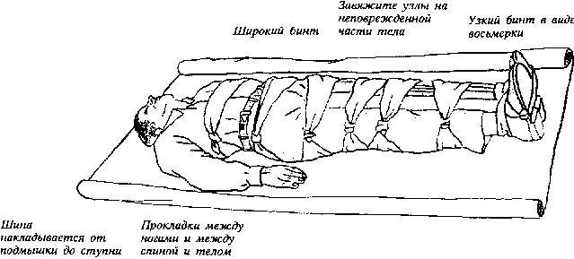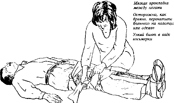 ЕСЛИ ТРАНСПОРТ задерживается, прибинтуйте поврежденную конечность к здоровой, используя ее как шину.