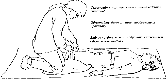 ЕСЛИ ПОМОЩЬ задерживается, зафиксируйте ногу шиной и прибинтуйте ее к неповрежденной конечности.