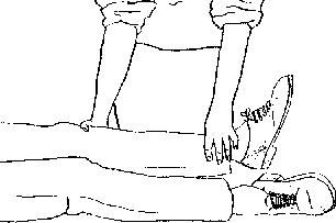 1. Помогите пострадавшему лечь и, осторожно зафиксируйте и поддержите поврежденную ногу. При необходимости осторожно обработайте рану. 2. Выпрямите ногу, используя нагрузку, осторожно вытягивая ногу по оси большеберцовой кости.