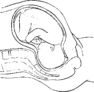 4. Когда выйдет самая широкая часть головки (свод черепа), скажите матери, чтобы она перестала тужиться. Это даст вам возможность быстро обследовать головку.