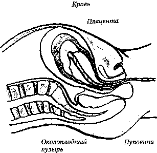 В течение третьей стадии родовой деятельности продолжаются небольшие схватки, в результате чего через 10-30 мин. появляется плацента и пуповина. Обычно это сопровождается кровотечением. Затем матка начинает сокращаться, закрывая место прикрепления плаценты и прекращая кровотечение.