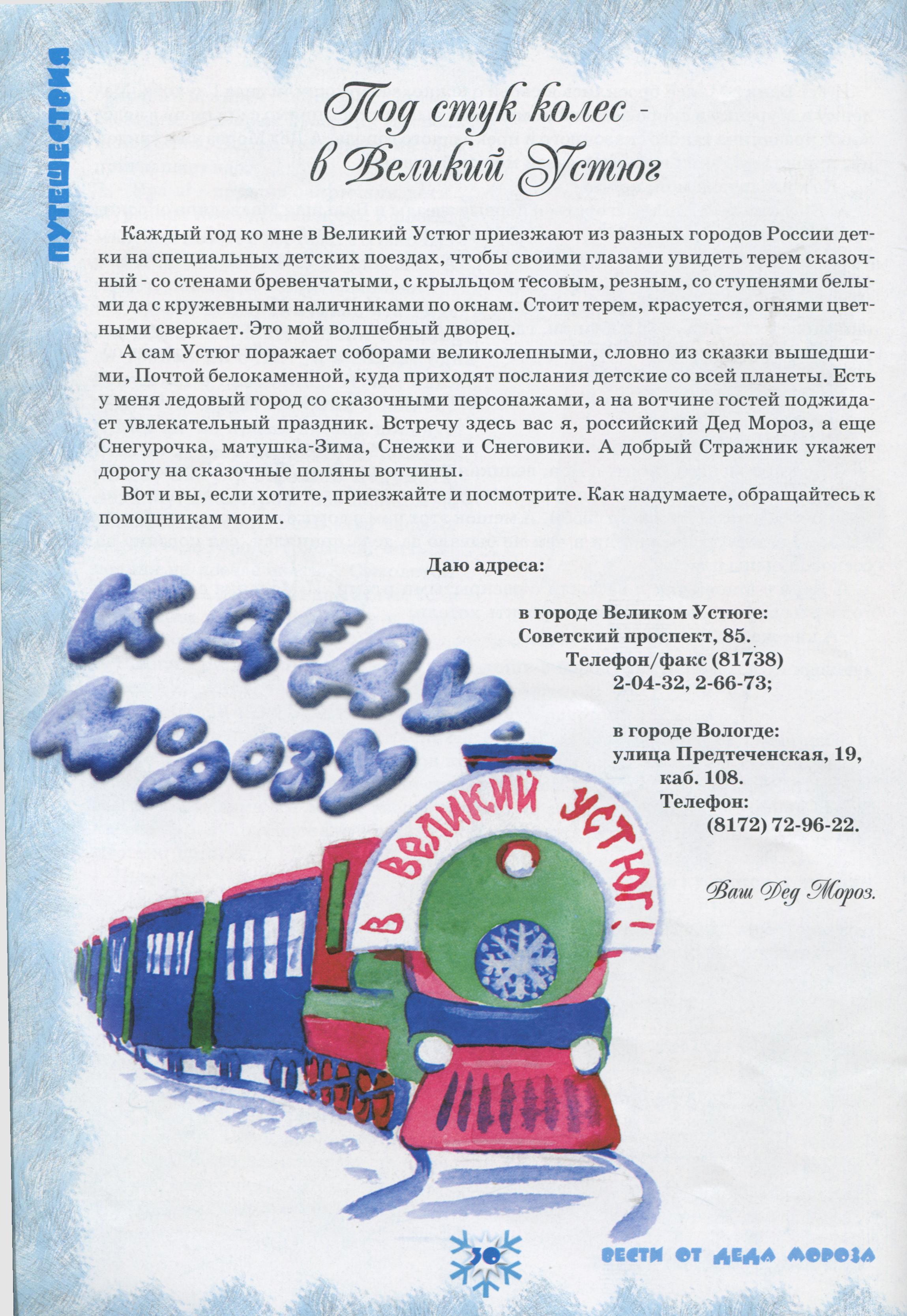 Источник: Вести от Деда Мороза / [А.Ехалов и др.]. – Вологда : [б.и.], 2001. – 32 с. : цв. ил.