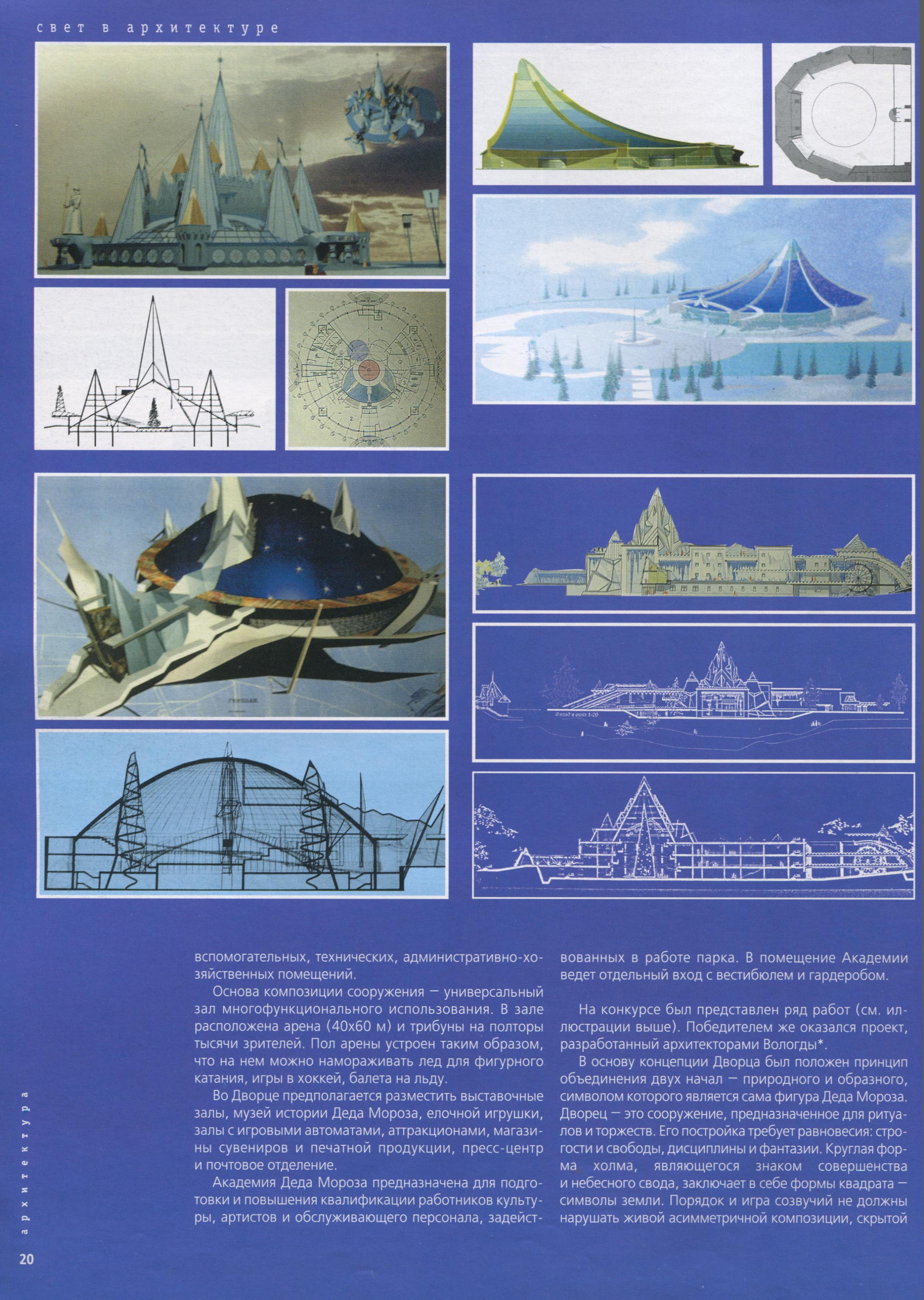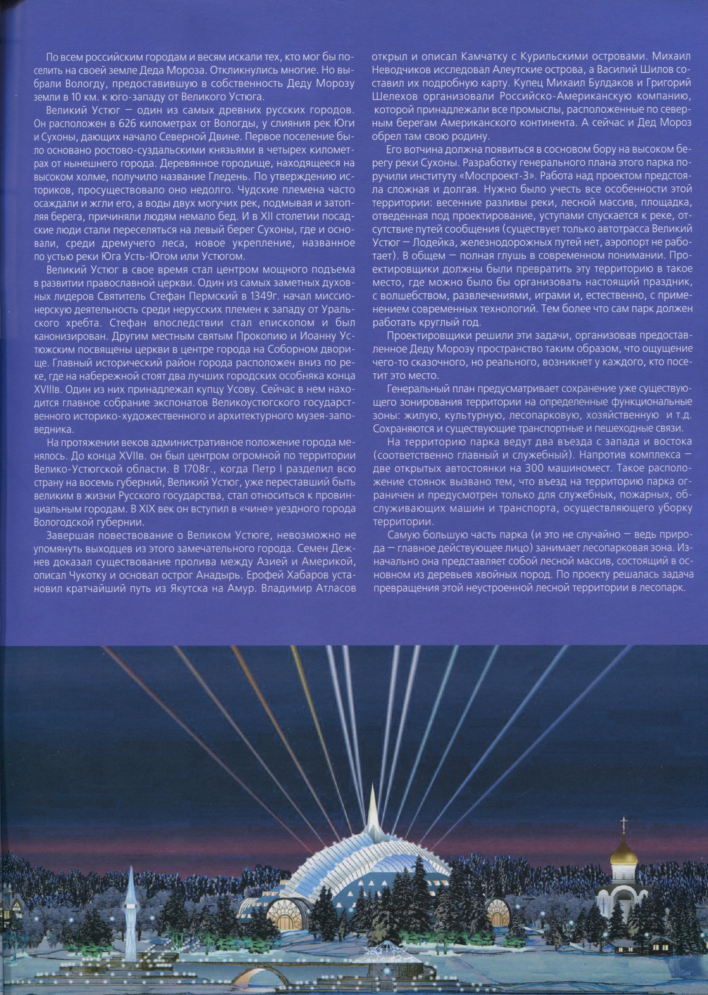 Источник: Аверьянова И. Сказочная реальность или парк развлечений «Великий Устюг – родина Деда Мороза» / И. Аверьянова // Архитектура. Строительство. Дизайн. – 2002. – №6. – С. 16-21.