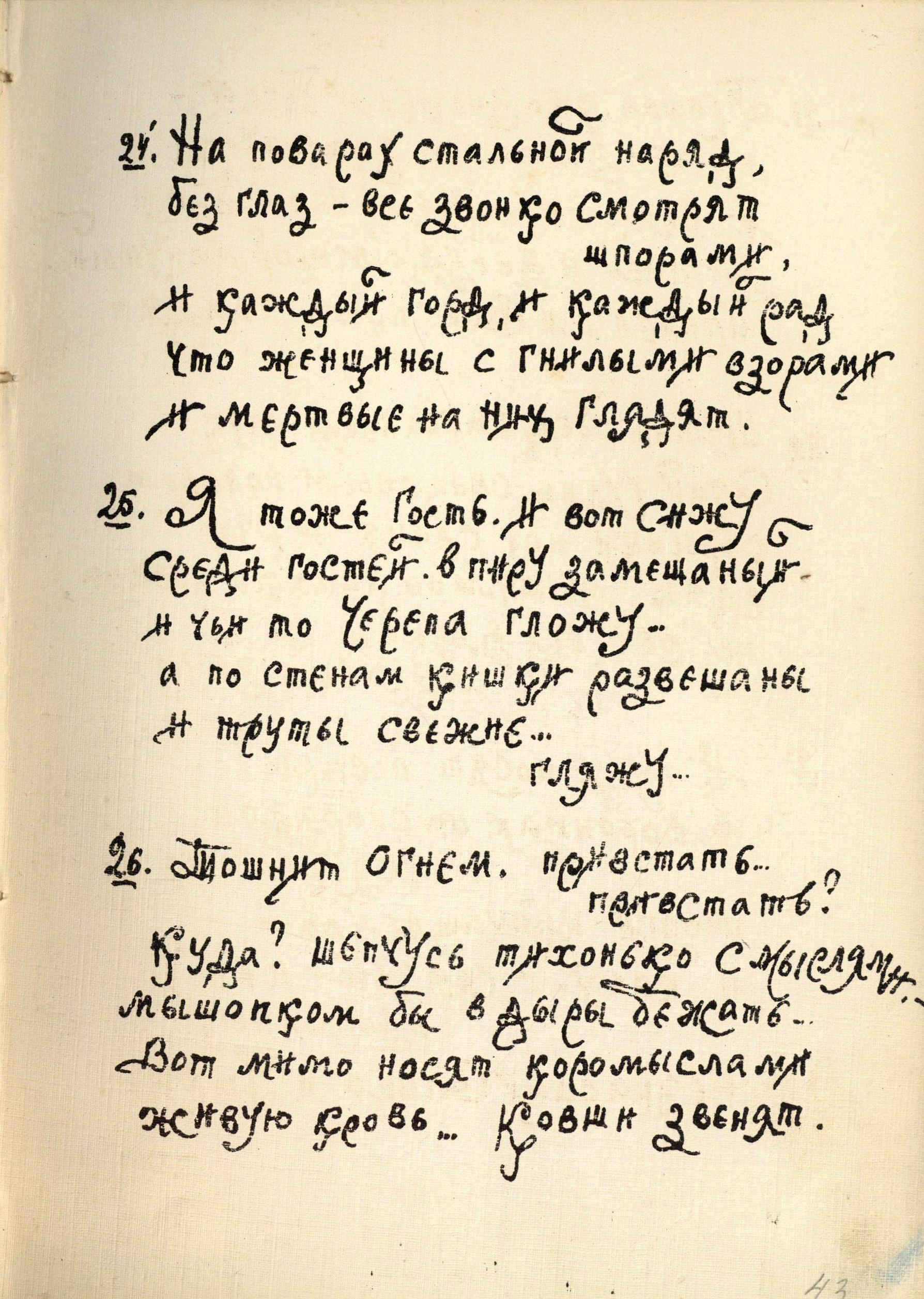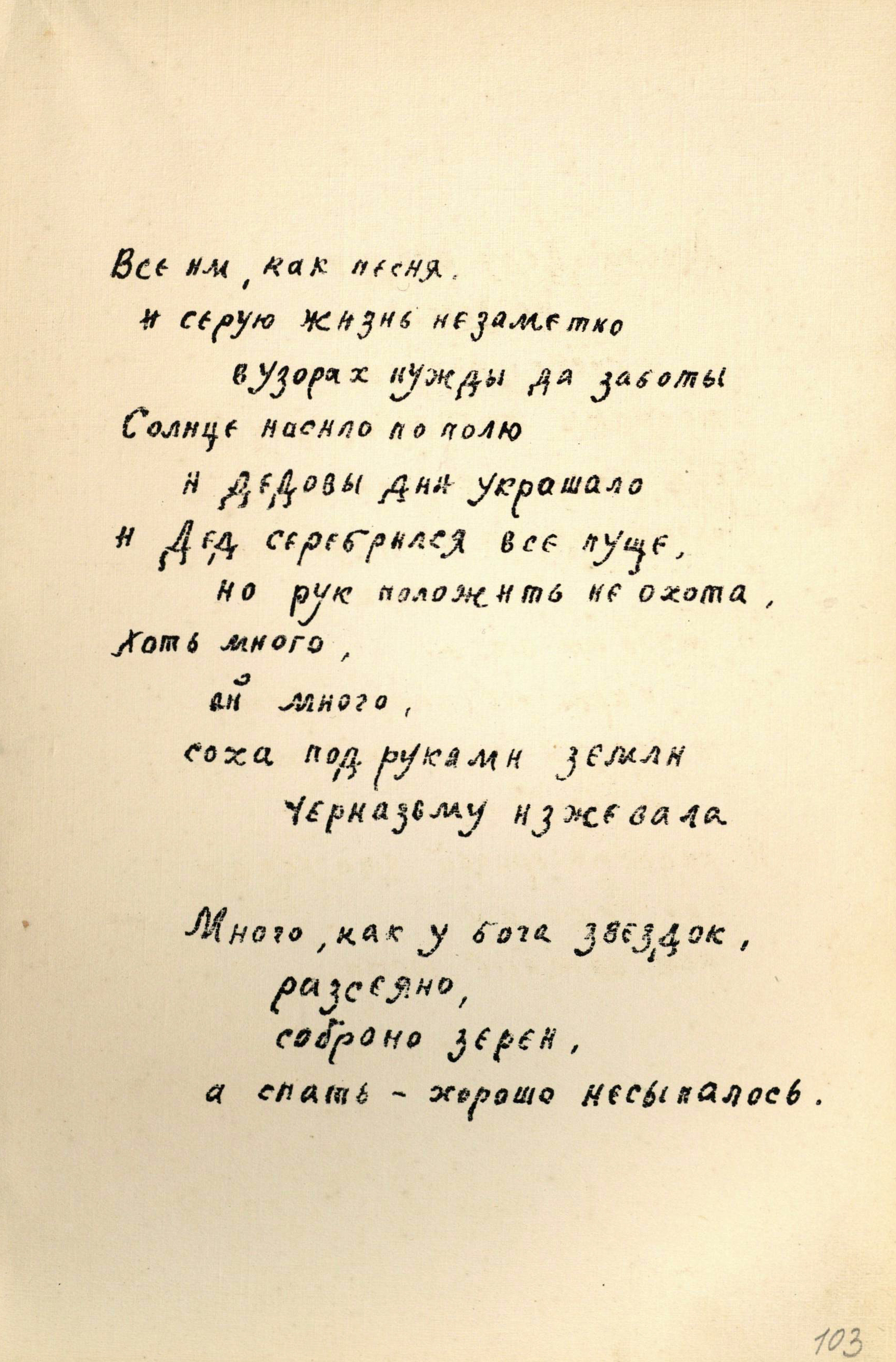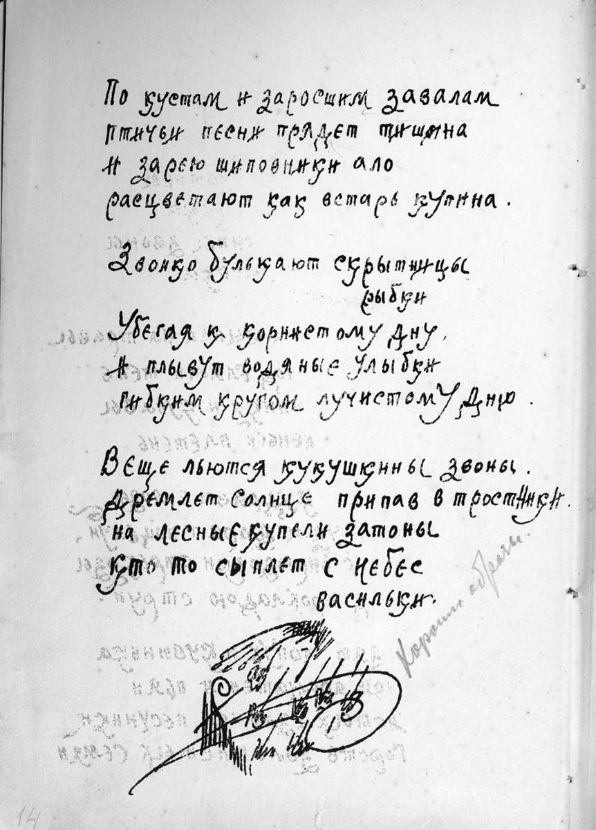 Изучение рукописи привело к неожиданным выводам, и теперь уже можно смело предполагать, что участие в создании книги принимал не один человек: Алексею Ганину кто-то помогал, поскольку очень сильно отличается почерк сборника «Золотое безлюдье», стоящий в конволюте последним, да и иллюстрации к нему носят несколько иной характер, чем в предыдущих сборниках. Почерк «Золотого безлюдья» – более строгий, без завитков, характерных для почерка Алексея Ганина. Иллюстрации этого сборника стали более насыщенными по объему и тону, они стали и более предметными (гребень, заяц, гроза – таких образных иллюстраций не было в других книгах).