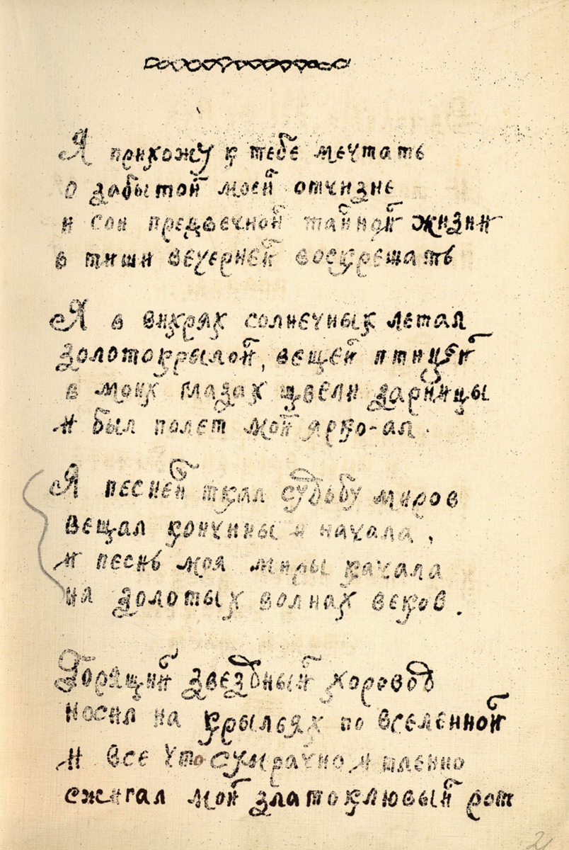 7Мстиславская Е. П., Яцунок Е. И. Авторская книга лирики как явление культуры // Книга: Исследования и материалы. – М., 1995. – С. 188.