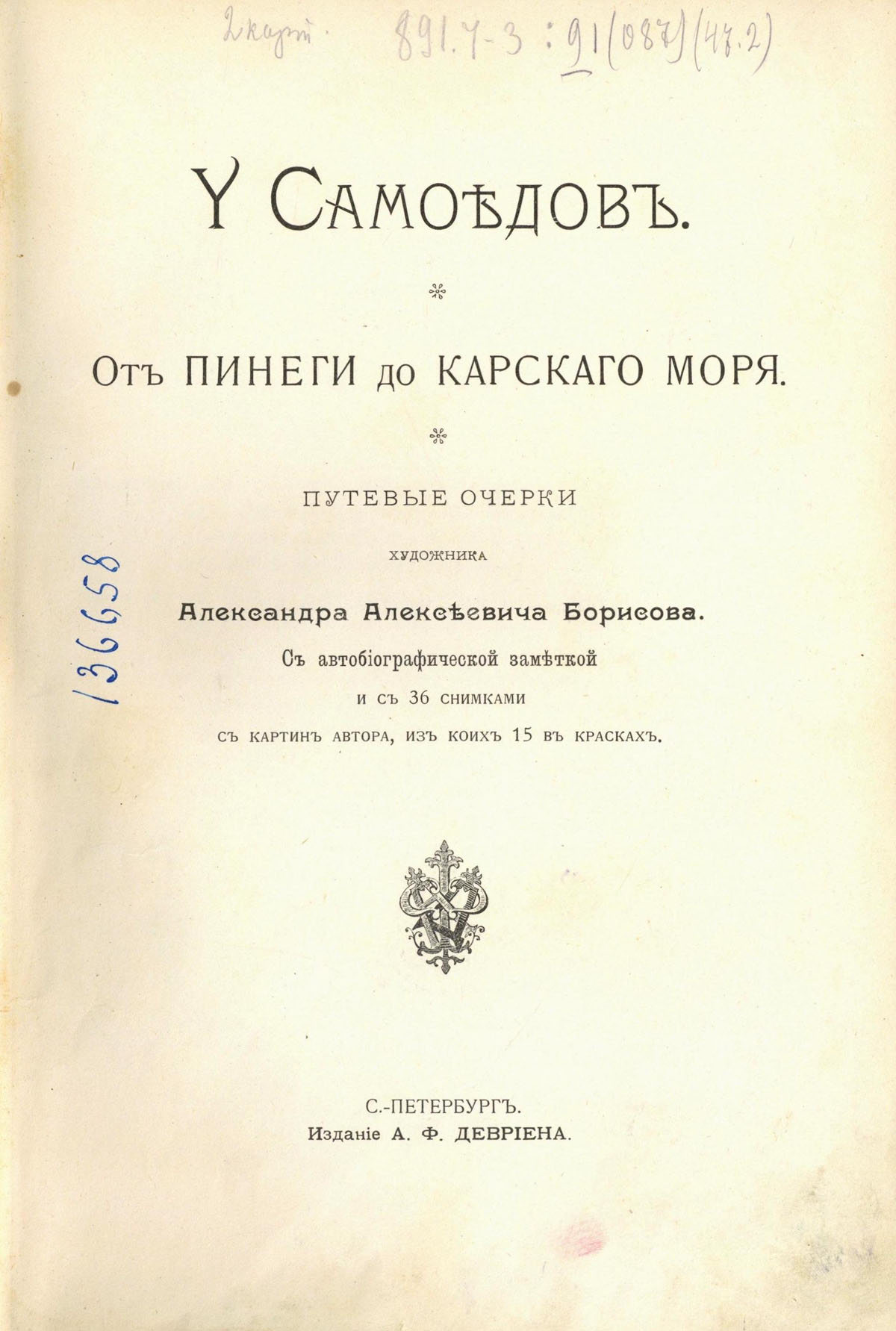 Настоящее издание представляет собой путевые очерки художника Александра Алексеевича Борисова, написанные по впечатлениям его экспедиции в 1897 году на Пинегу, в Усть-Цильму, Пустозерск и далее на остров Вайгач. Подробнее