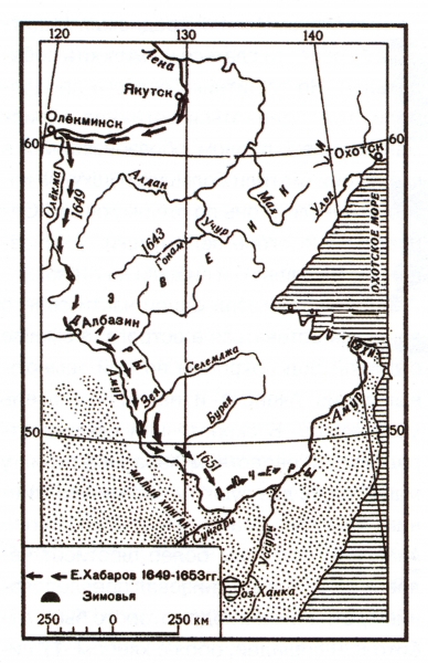 В прошлом, государь, во 157 г. из Илимского острогу воевода Дмитрий Фрянцбеков да дьяк Осип Степанов отпустили меня про¬ведать новую Даурскую землю. И я на три годы поднял своими животами с собою семьдесят человек без государева жалованья, и тот подъем стал мне полчетверты тысячи рублев.