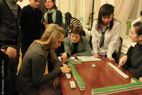 Кто-то открыл для себя непростую японскую игру маджонг – азартную игру в фишки с использованием игральных костей, для четырех игроков. По правилам схожа с покером, требует особой наблюдательности, чтобы запоминать ходы противников. Цель игры – набрать как можно большее количество очков, собрав наиболее ценную комбинацию из заданного количества фишек. Игра широко распространена в Китае, Японии и других странах Восточной и Юго-Восточной Азии. Это одна из древнейших игр в мире. В переводе маджонг обозначает «гремящий воробей». Такое название связано с тем, что при перемешивании фишек получается шум, похожий на звуки, издаваемые ссорящимися воробьями. Эта игра имеет и другие имена – шанхайский пасьянс, китайское домино. С правилами этой игры гостей вечера знакомили профессионалы – представители маджонг-клуба «Небо белого дракона».