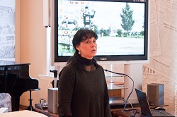 Представляя некоторых выступающих, ведущая вечера Инга