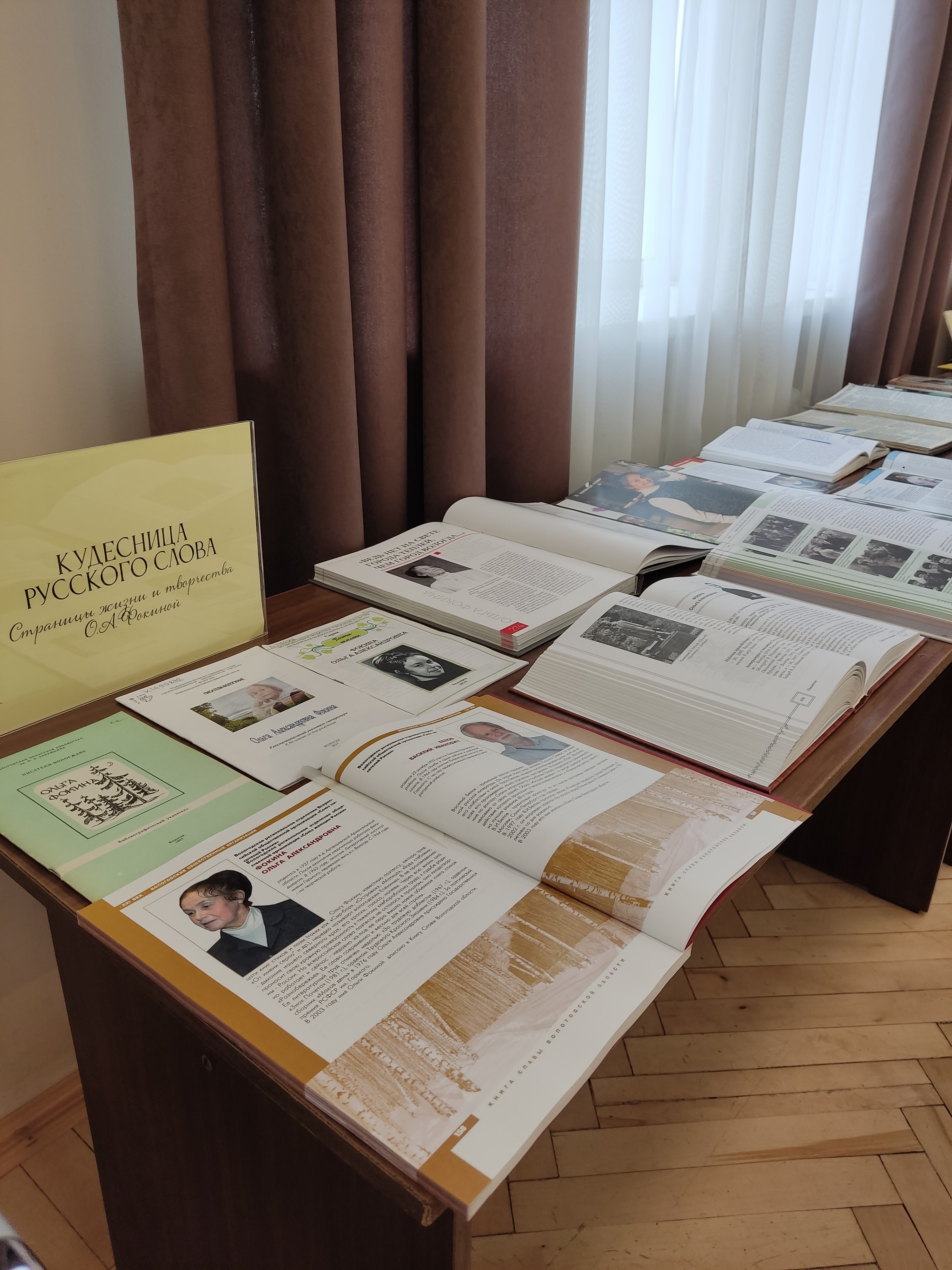 Вологодская областная универсальная библиотека приглашает всех желающих на книжную выставку «Простые звуки Родины моей…», посвященную 85-летию Ольги Фокиной. Здесь представлено более 200 изданий о жизни и творчестве поэта, а также сборники стихов Ольги Александровны от первой ее книги «Сыр-бор» 1963 года, за которую она получила билет Союза писателей СССР, до вышедшей в 2020 году «Семьиструнки».