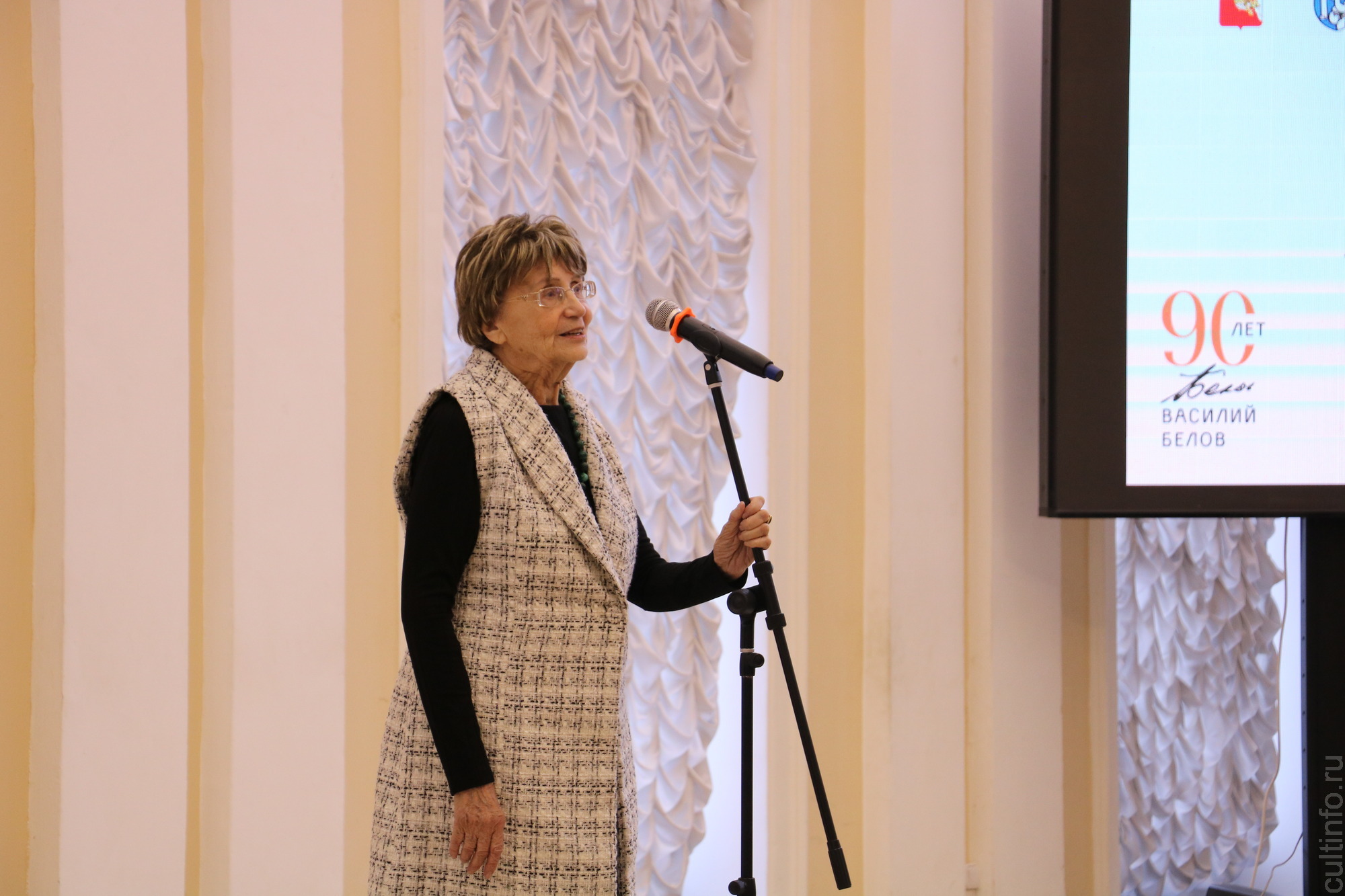 Участников конференции приветствовала супруга писателя Ольга Белова: «Я очень удивлена, что уже проходят девятые чтения. Как летит время! Мероприятий множество – я поражаюсь, сколько фантазии и энергии отдают мои земляки творчеству Василия Белова. Меня на самом деле интересуют не только прекрасные, глубокие доклады по творчеству Белова, но даже детские рисунки, к которым я всегда отношусь с большим трепетом. На мой взгляд, сегодня Белов становится к нам ближе и современнее. Потому что сейчас идет разговор о патриотизме, о традиционных ценностях – все это есть в творчестве Белова. Тем более время сейчас не спокойное, вынуждающее нас думать, а что же будет дальше, беспокоиться. На все вопросы эти отвечал Белов. Он многое предвидел – это я вам с полной ответственностью говорю – и многое предупреждал».