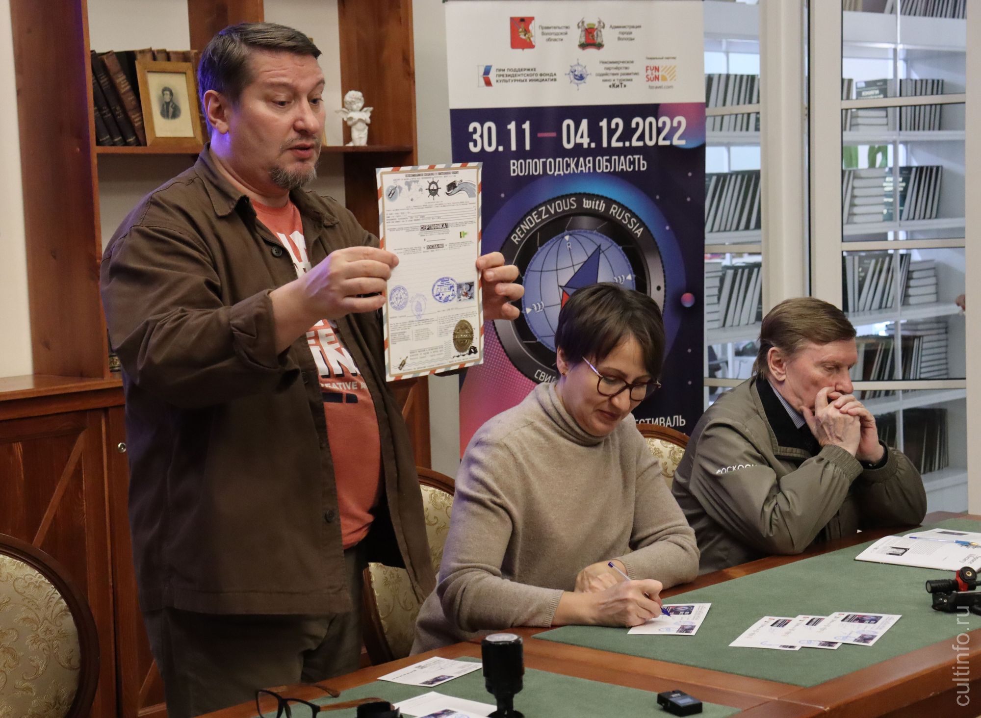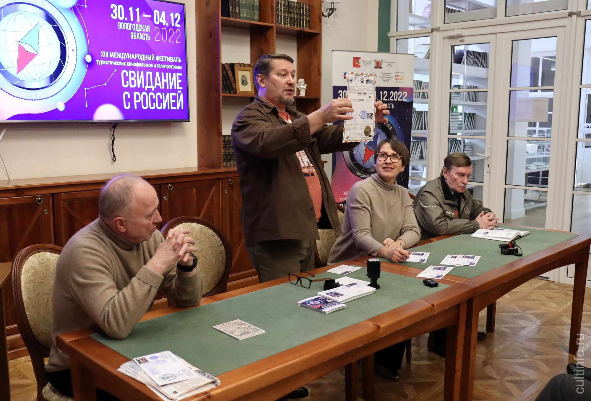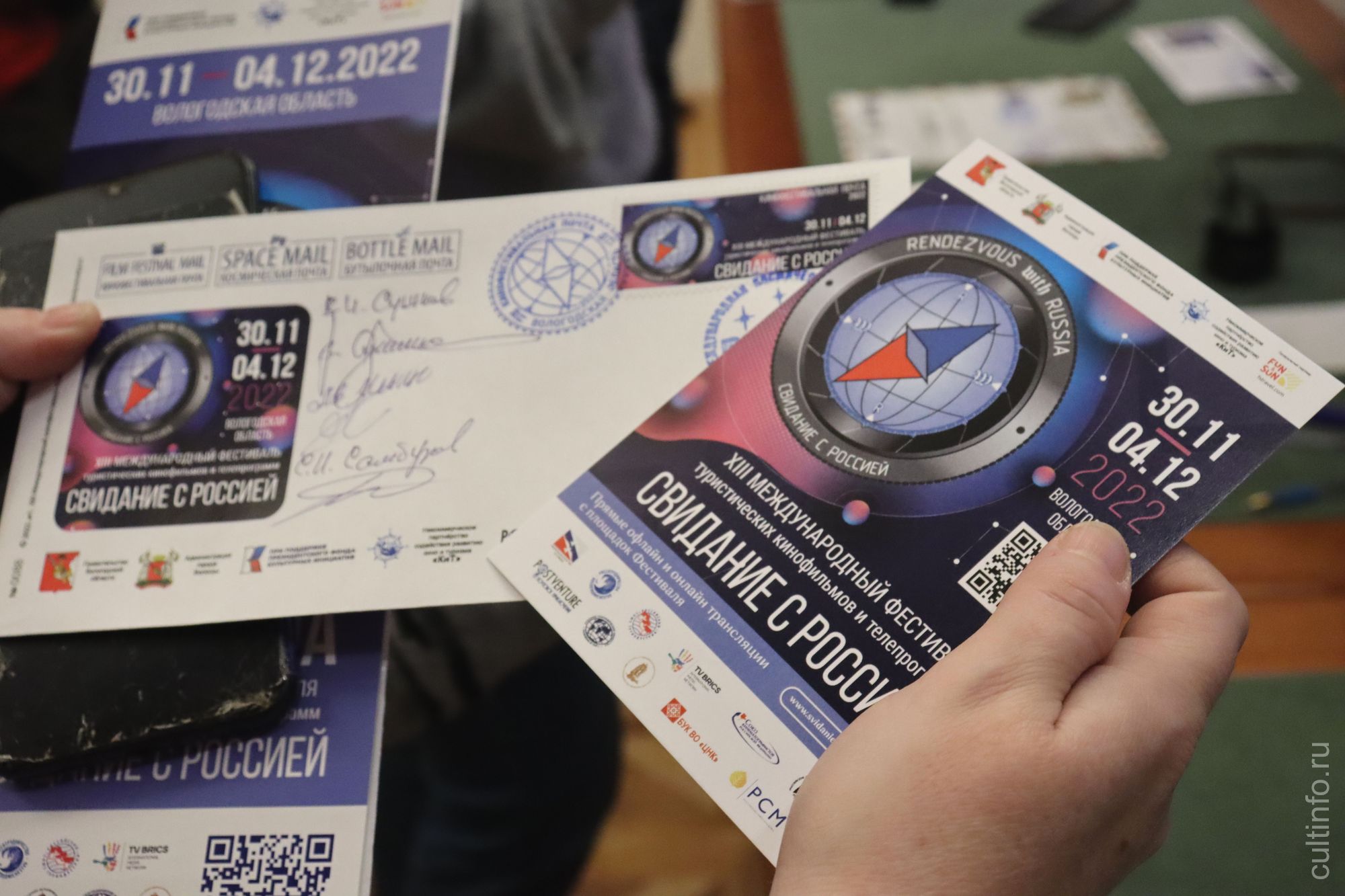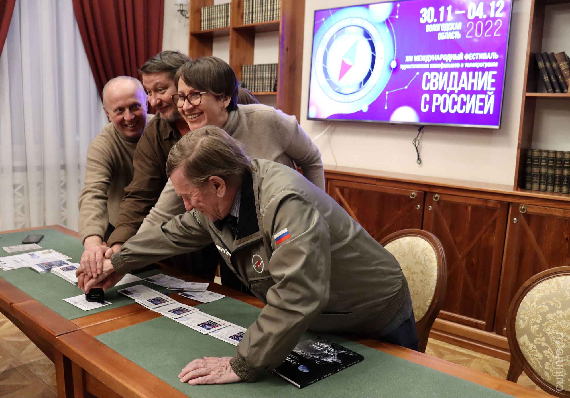 Церемония спецгашения филателистического выпуска, посвященного XIII Международному фестивалю туристических фильмов и телепрограмм «Свидание с Россией», состоялась в Вологде. В ней приняли участие руководитель фестиваля, режиссер, продюсер Александр Ильин, исследователь и путешественник Валерий Сушков, директор Вологодской областной научной библиотеки Татьяна Буханцева и Сергей Самбуров – почетный профессор Юго-Западного государственного университета, руководитель радиолюбительской деятельности на борту МКС – RS0ISS, правнук Константина Циолковского.