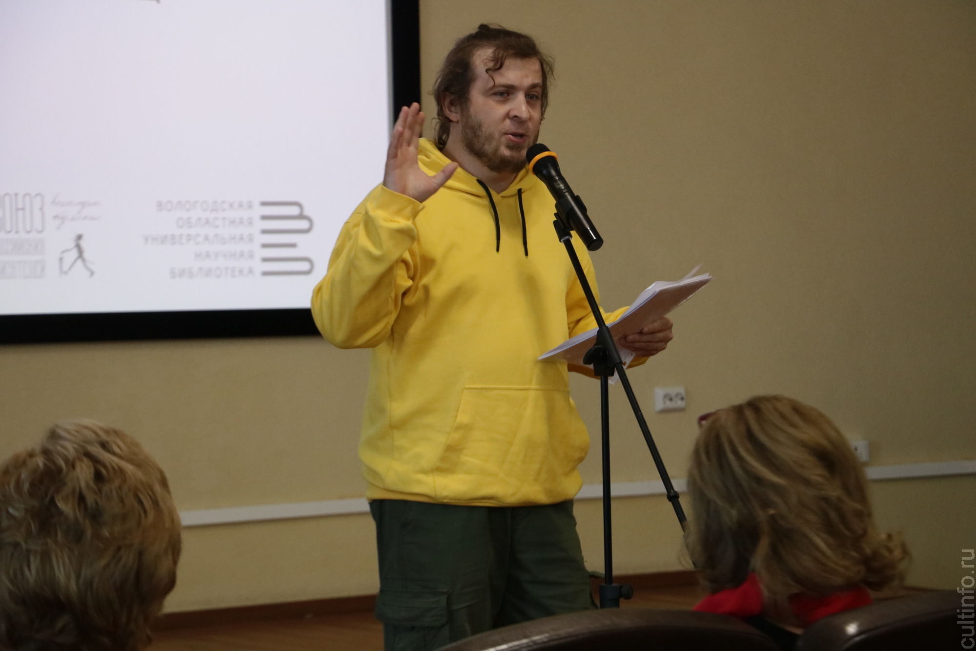Еще одним гостем стала поэт из Москвы Дарья Ильгова. Она не первый раз в Вологде – в 2022 году приезжала на юбилейные мероприятия к 100-летию Сергея Викулова. Дарья – автор книг «Расстояния», «Снимки», «Молчание», «Оригами», «Пятна памяти». Является лауреатом премии Zverev Art Prize и финалистом премии «Лицей». Дарья прочитала стихи из книги «Оригами», которую привезла в подарок вологжанам.