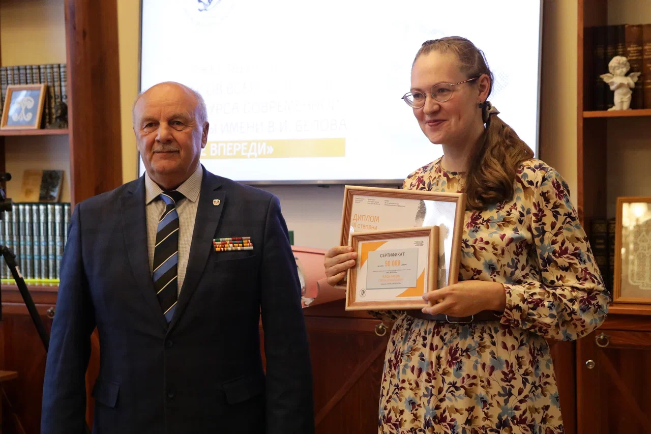 Торжественная церемония награждения победителей Всероссийского конкурса современной прозы имени В.И. Белова «Всё впереди» состоялась сегодня в областной библиотеке. Вручение литературной премии – одно из главных событий Всероссийских Беловских чтений, которые проходят в 11-й раз на Вологодчине. В этом году конкурс, призванный сохранять беловский дух в современной прозе, привлек внимание более сотни авторов из различных уголков России и из-за рубежа.
