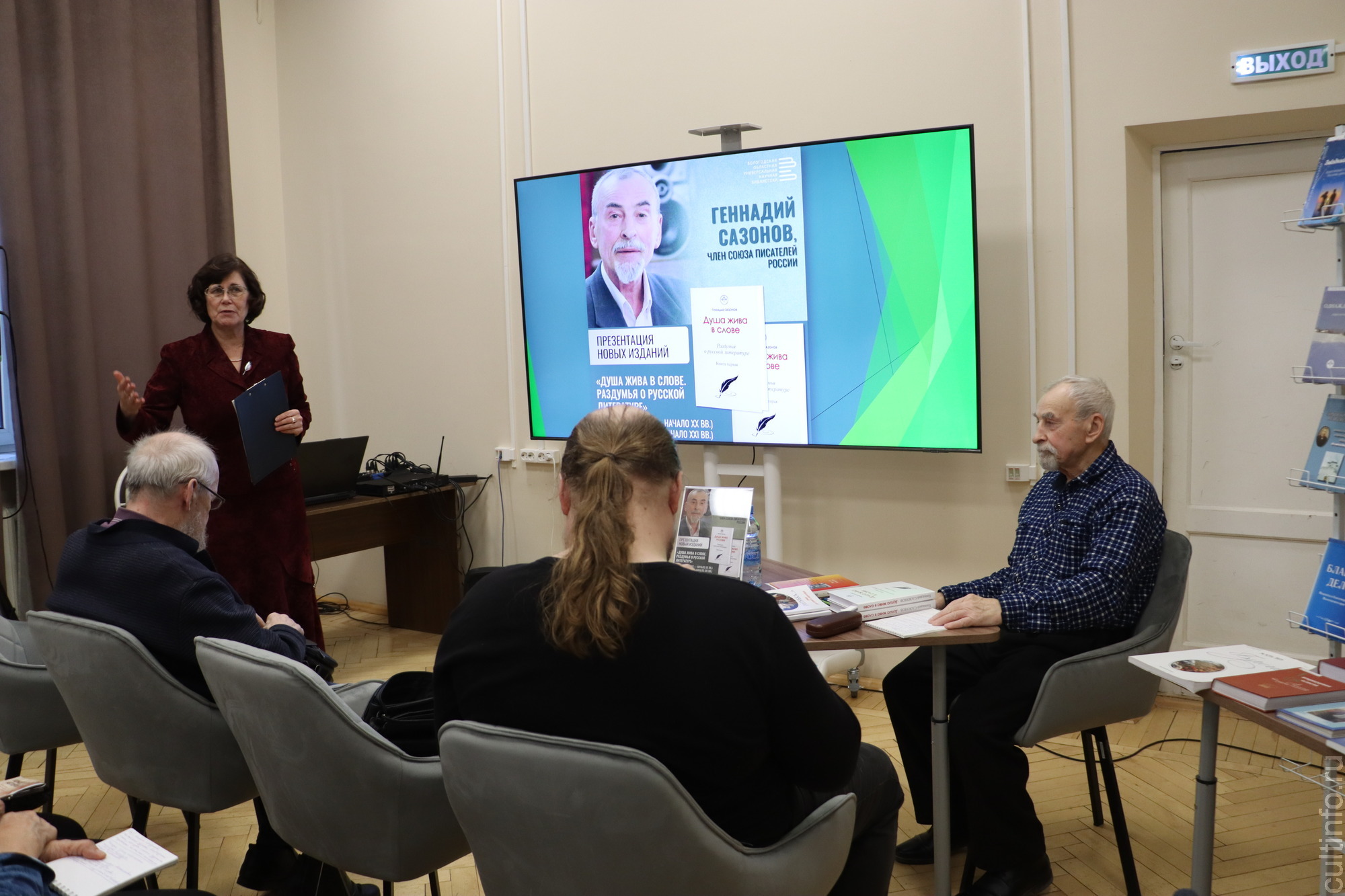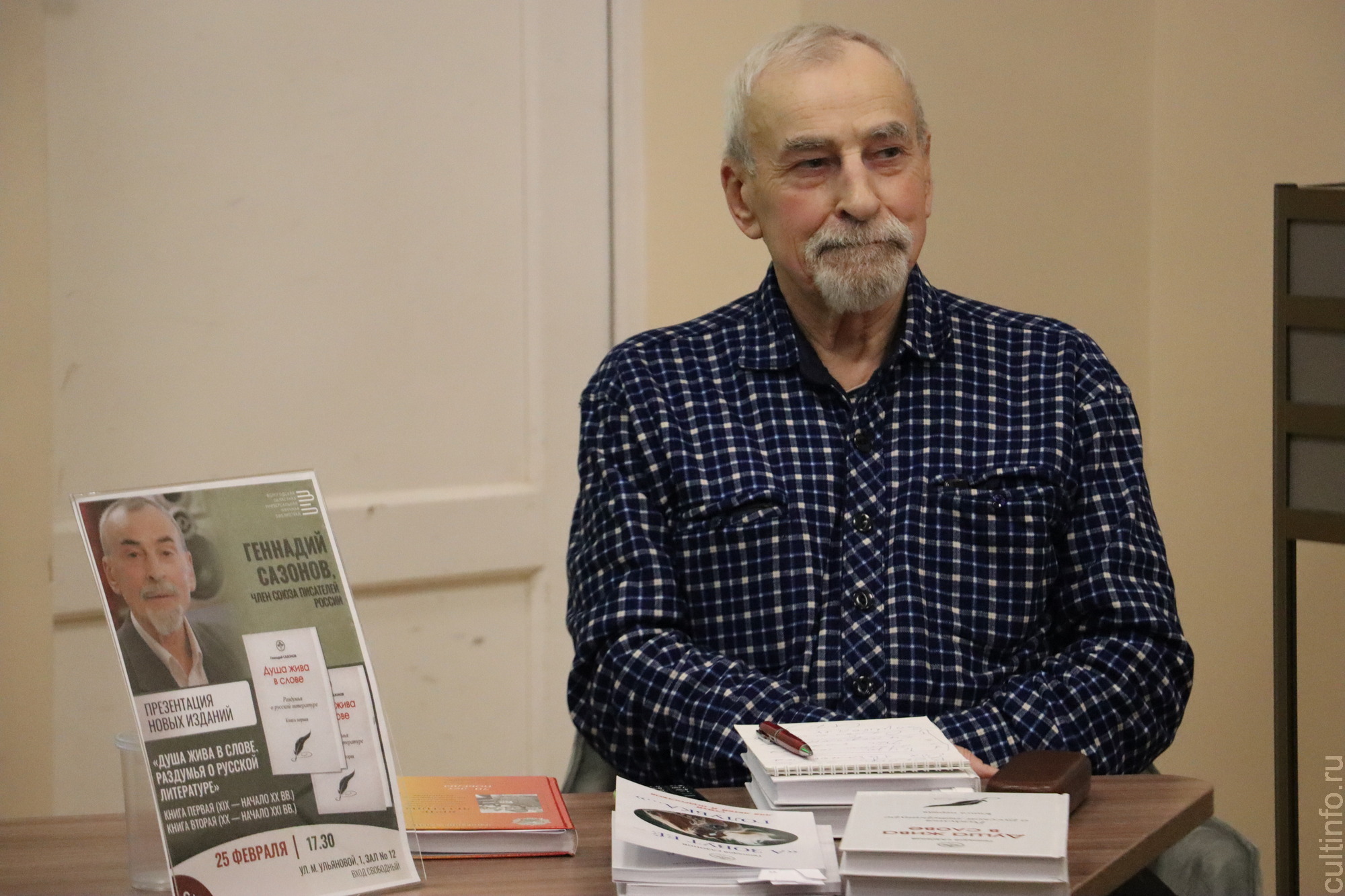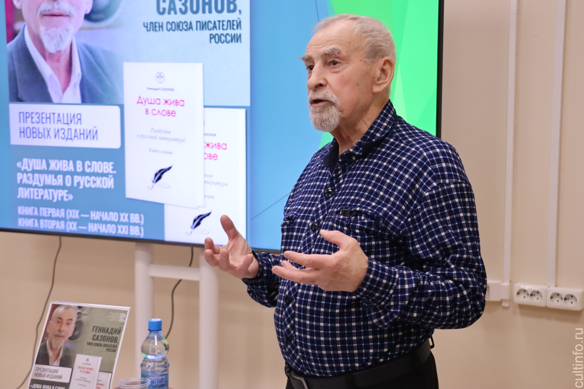 О литературе и не только шла речь на творческой встрече с членом Союза писателей России, поэтом, публицистом и прозаиком Геннадием Сазоновым. Геннадий Алексеевич представил свой новый писательский труд – вторую книгу из цикла «Душа жива в слове. Раздумья о русской литературе» (12+). Если первое издание было посвящено литературным событиям и известным писателям XIX – начала XX веков, то вторая книга рассказывает о литературном процессе ХХ – XXI веков. Читатель может узнать о современниках автора – со многими Геннадий Алексеевич общался лично. В книге собраны материалы о Николае Рубцове, Василии Белове, Александре Яшине, Федоре Абрамове, Александре Романове, Николае Коняеве, Ольге Фокиной, Станиславе Золотовцеве, Льве Труневе, Сергее Викулове, Александре Грязеве, Юрии Петухове, Александре Арцибашеве и других писателях и поэтах, оставивших свой след в современной литературе и культуре.