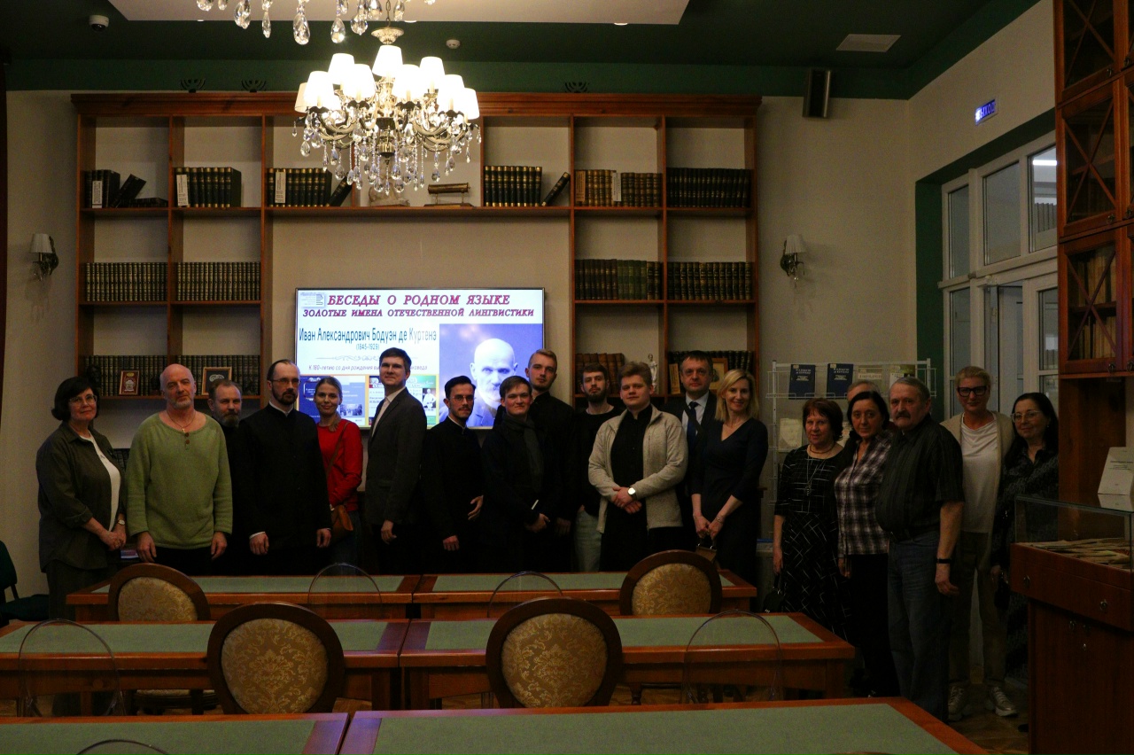 29 апреля 2025 года в стенах в Вологодской областной универсальной научной библиотеки состоялась очередная встреча в рамках проекта «Беседы о родном языке», которую посетили студенты очного отделения Вологодской духовной семинарии. В этот раз культурно-просветительское мероприятие было посвящено 180-летию со дня рождения выдающегося лингвиста Ивана Александровича Бодуэна де Куртенэ (1845-1929).