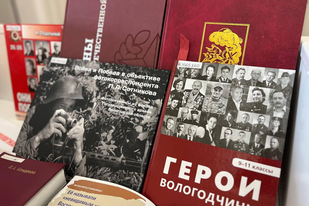 Книжная выставка-просмотр «Страницы Великой Победы», посвященная 80-летию Победы в Великой Отечественной войне, начала работу в здании Вологодской областной научной универсальной библиотеки на ул. Марии Ульяновой, 1.