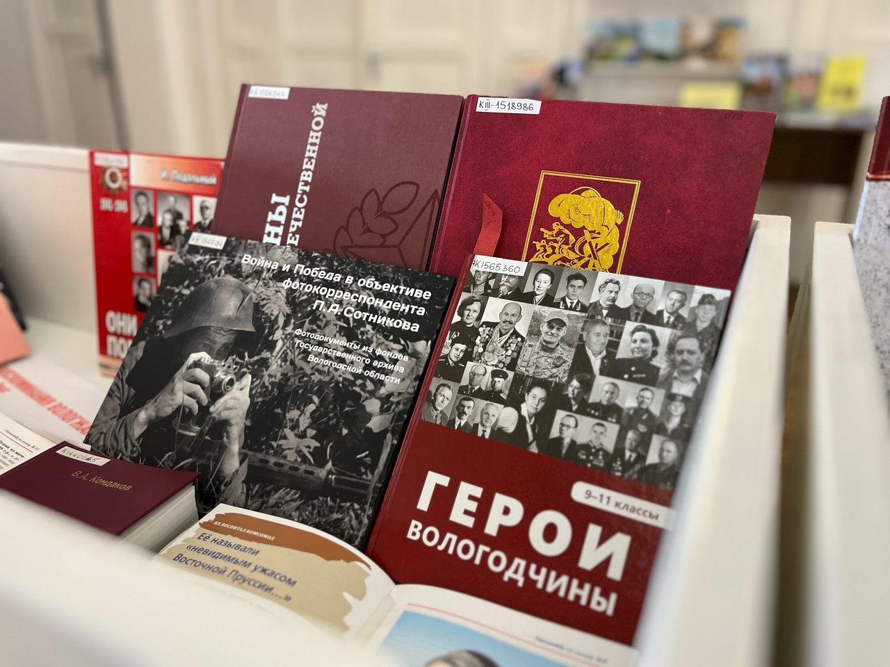 В разделе, посвященном нашему краю в годы войны, представлены издания последних лет, среди которых воспоминания «Опалённые войной» и сборники «Герои Вологодчины» и «ВСП 312» о легендарном военно-санитарном поезде, сформированном в Вологде.