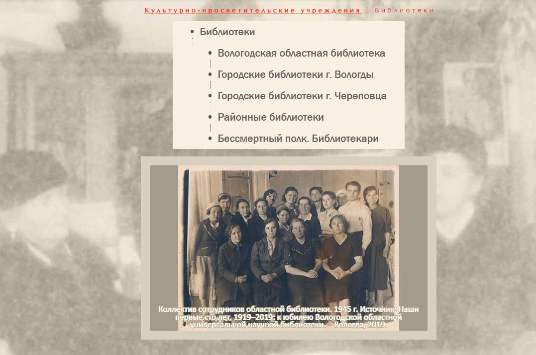 При работе над электронным ресурсом сотрудники библиотеки максимально полно собрали и систематизировали сведения о культурной жизни региона: газетные публикации 1941-1945 годов, материалы периодической печати из фондов ВОУНБ, работы современных исследователей. Вся информация представлена в трех разделах. Посетили узнают, как работали учреждения культуры в определенном городе и районе, что было на афишах в годы войны и многое другое.