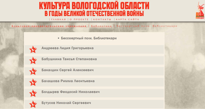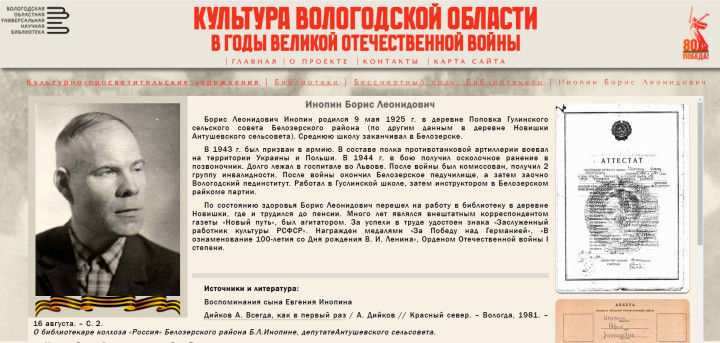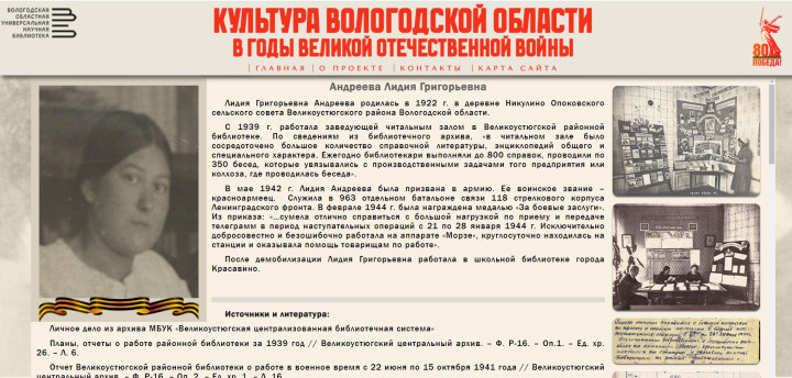 «Электронный ресурс «Культура Вологодской области в годы Великой Отечественной войны» способствует важному делу сохранения исторической памяти о событиях Великой Отечественной войны. Он будет полезен историкам, учащимся, работникам сферы культуры и образования и всем тем, кто интересуется историей и вкладом вологжан в дело Победы», – уверены в областной библиотеке.