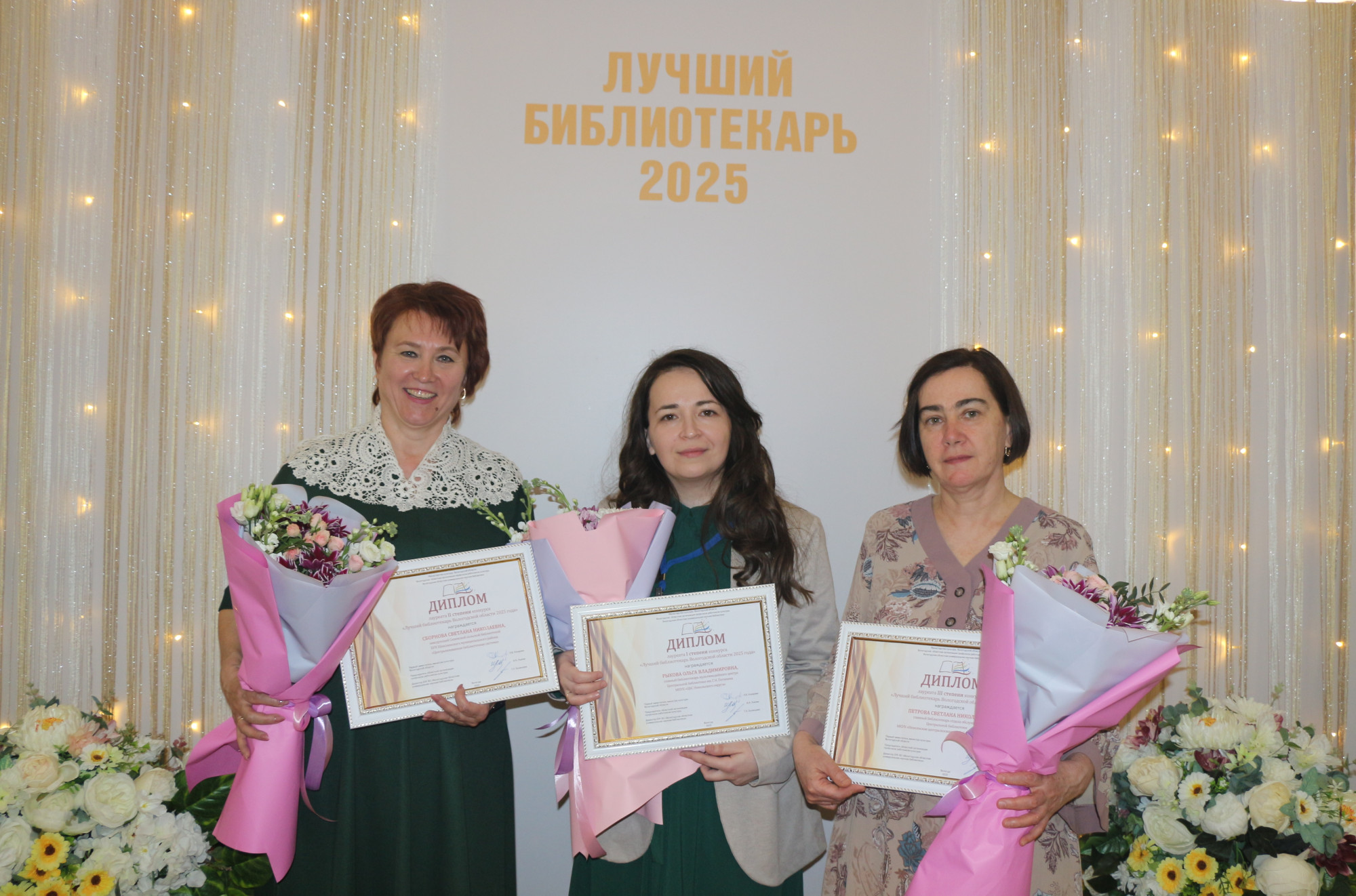 По итогам мероприятия семь финалистов награждены сертификатами и ценными подарками. Победителями конкурса «Лучший библиотекарь Вологодской области 2025 года» стали: