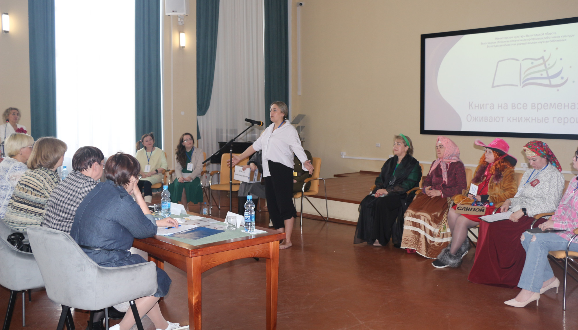 На творческом задании «Книга на все времена: оживают книжные герои» библиотекари представляли разных литературных персонажей. Конкурсанты пели, декламировали стихи и прозу, выступали в костюмах выбранных героев, разыгрывали сценки из произведений, показали сказку с множеством сюжетных линий.