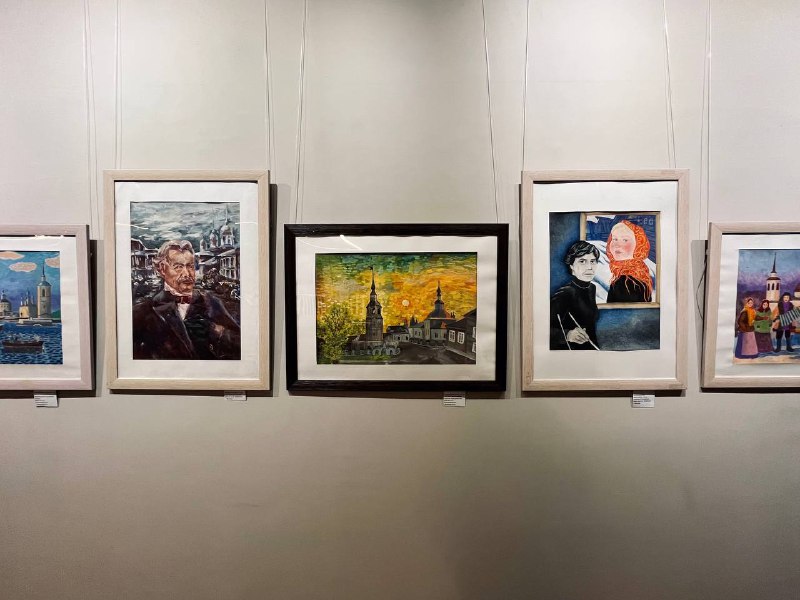 Из 60 произведений, которые демонстрировались в областной картинной галерее в мае, были отобраны 12, посвященных Вологде и Великому Устюгу – это портреты известных вологжан и пейзажи с достопримечательностями.