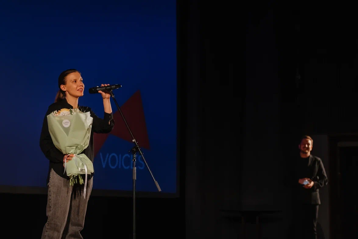 Финальным событием фестиваля стал показ фильма «Альфа» Жюлии Дюкурно – участника официальной программы Каннского кинофестиваля-2025. Это российская премьера, и впервые на VOICES фильм был показан с живым синхронным переводом Полины Минор. Действие картины разворачивается в недалёком будущем: таинственная болезнь превращает людей в каменные статуи, а 13-летняя героиня фильма становится изгоем из-за подозрения в болезни. Вместе с матерью, врачом, они проходят путь через страх, семейные тайны и любовь, которая, по словам авторов фестиваля, «сильнее смерти».