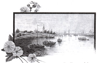 Поднимаясь все выше и выше, суда встречают на пути уездный город Череповец. Это город сравнительно молодой (с 1 780 г.); он образовался из слободы существовавшего здесь еще с XV века Воскресенского монастыря, упраздненного в 1 746 году. На месте