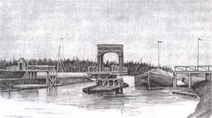 Подъемный Волоков мост в начале шлюзованной части системы, в 11 верстах от села Девятины.
