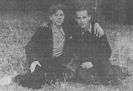 Этот снимок сделан неизвестным фотографом летом 1955 года в посёлке Приютино Ленинградской области. На фотографии изображён Николай Рубцов и безымянный молодой человек. Сначала я предположительно думал, что это старший брат поэта Альберт, так как лицо очень похоже на снимки Альберта из архива его дочери Марины. Но вот недавно я получил по Интернету письмо из Череповца от Леонида Вересова, у которого тоже есть подобная фотография. Л. Вересов показывал копию этой карточки дочери Альберта – Марине, и она засомневалась в том, что рядом с поэтом снят её отец. А приютинская подруга молодости Рубцова Т.А. Голубева (Смирнова), посмотрев на карточку, сказала, что это и не Альберт, и не друг поэта Николай Беляков. Может, кто-нибудь из тех, кто прочтёт эту статью в альманахе и увидит снимок, узнает этого молодого человека? Отзовитесь!