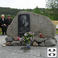 Наталия Григорьевна Асмолова-Тендрякова у памятного знака в деревне Макаровская Верховажского района