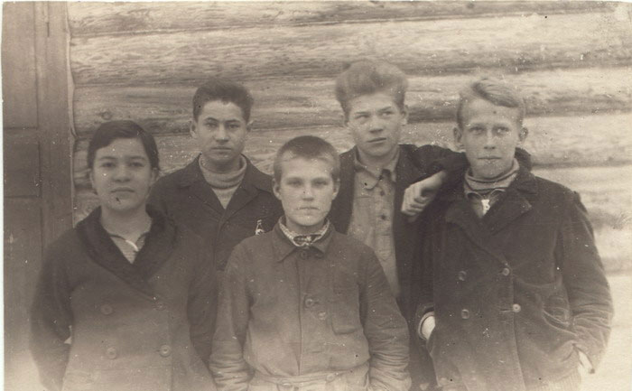 Владимир Тендряков (первый справа) среди членов редколлегии школьной стенгазеты при Подосиновской средней школе