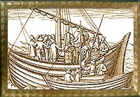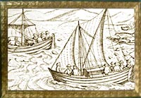 | Русский корабль в Ледовитом океане (погрузка товаров на корабль с лодки русских поморов) // Сигизмунд Герберштейн. Записки о Московитских делах. – СПб., 1908 | Суда русских промысловиков. Гравюра из описания путешествия Геррит де-Вера. XVI век // Вологда в минувшем тысячелетии: Очерки истории города. - Вологда, 2004. - С.26. | Иностранный корабль у русских берегов. Фрагмент гравюры из книги "Описание путешествия А. Олеария". 1656 год // Вологда в минувшем тысячелетии: Очерки истории города. - Вологда, 2004. - С.47. |